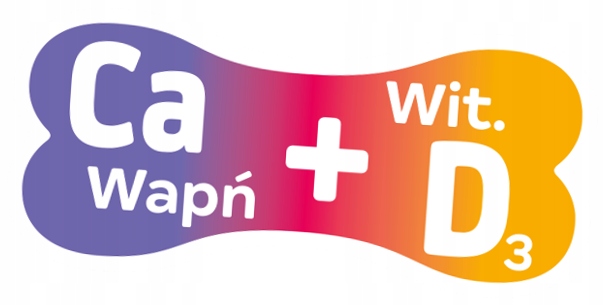 Substancja wypełniająca (syrop maltitolowy), fosforan trójwapniowy, żelatyna (z wieprzowiny), kwas (kwas cytrynowy), naturalny aromat truskawkowy z innymi naturalnymi aromatami, koncentrat z marchwi i czarnej porzeczki, tłuszcz roślinny (kokosowy i rzepakowy), substancja słodząca (sukraloza), substancja powlekająca (wosk carnauba), cholekalcyferol.